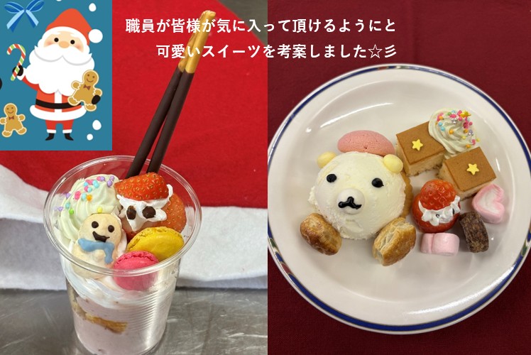 24日のおやつの時間にキラキラしたスイーツが登場しました! 可愛いデコレーションのパフェに皆様注目されていらっしゃいました
